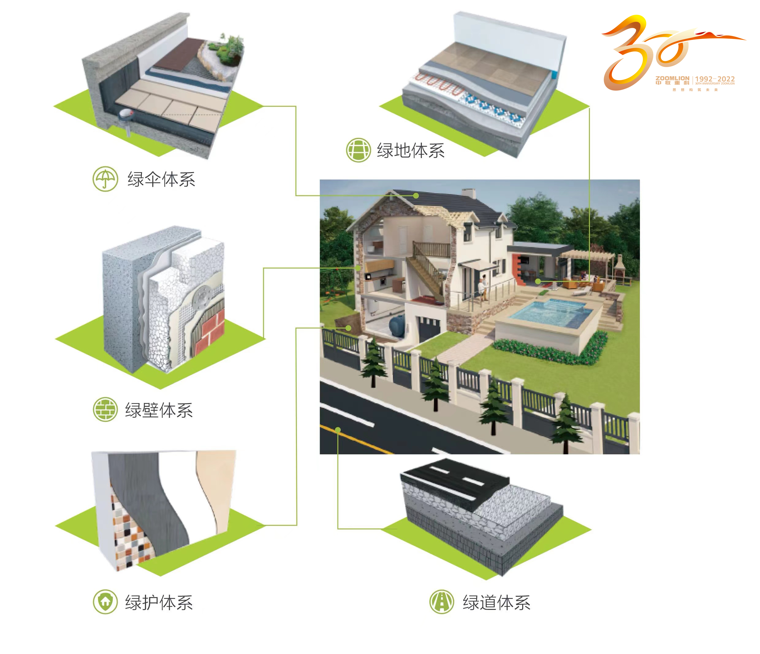 以這些精準(zhǔn)計(jì)量系統(tǒng)為基礎(chǔ),中聯(lián)重科打造了先進(jìn)的建筑新材料智能產(chǎn)線(xiàn),并組建了龐大的碩博技術(shù)團(tuán)隊(duì),成立了專(zhuān)門(mén)從事建筑材料研發(fā)的材料研究院,建筑新材配方和工藝的創(chuàng)新研發(fā)不斷加快腳步。目前,中聯(lián)重科新材料已開(kāi)發(fā)出3000多種建筑材料基礎(chǔ)配方和工藝,轉(zhuǎn)化出90多類(lèi)功能性建筑材料產(chǎn)品,形成了“綠傘、綠壁、綠地、綠護(hù)、綠道”五大綠色節(jié)能建筑材料產(chǎn)品體系。