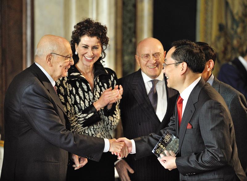 ? ? ? ? ? ? ? ? ? ? ? ??2011年1月25日,意大利總統(tǒng)納波利塔諾為中聯(lián)重科董事長(zhǎng)詹純新頒發(fā)"萊昂納多國(guó)際獎(jiǎng)",這是中國(guó)企業(yè)家首次獲該國(guó)際獎(jiǎng)項(xiàng)。 ?